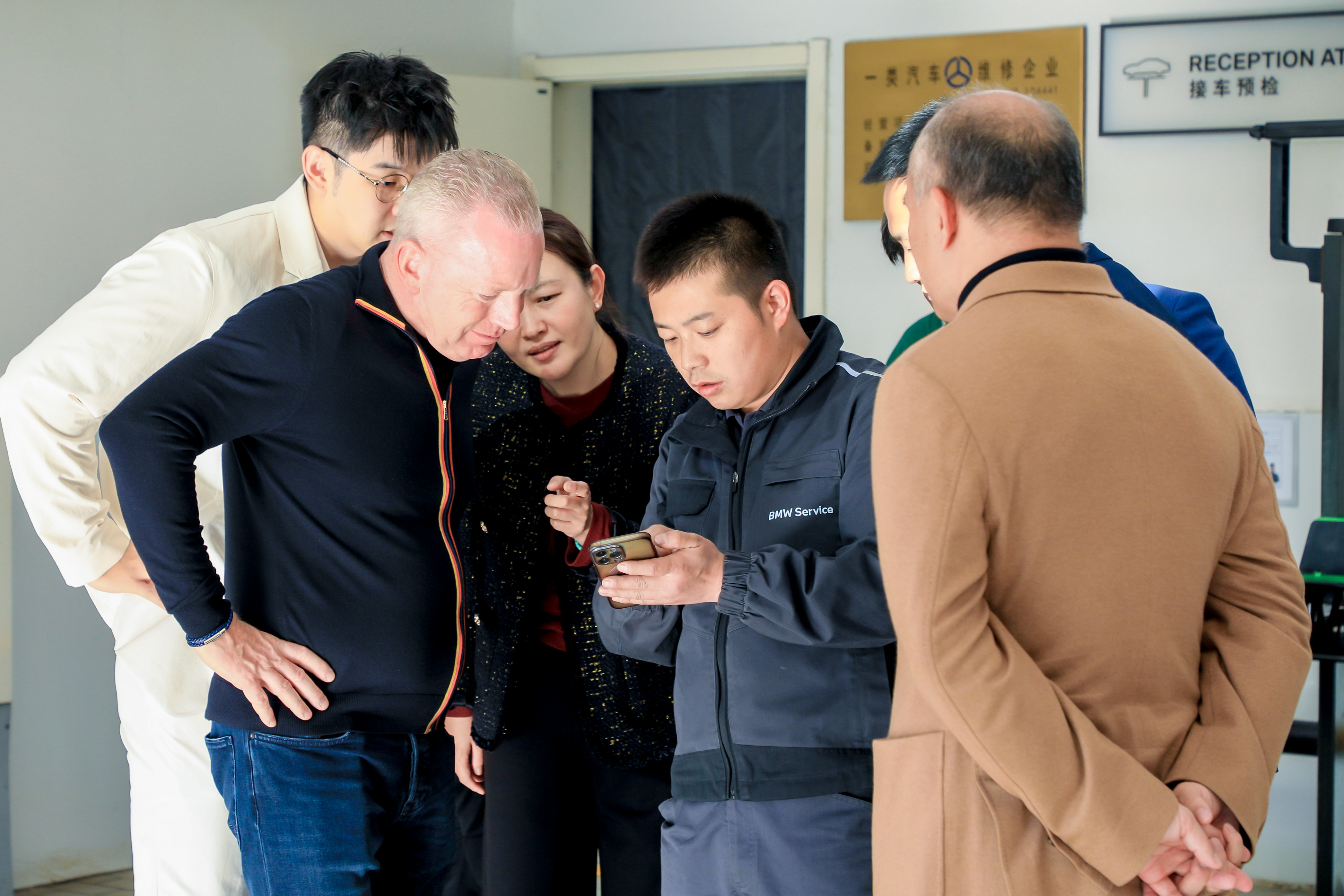 访问伊始,在管理团队的陪同下,走访团队首先参观了北京盈之宝的BMW展厅与售后服务中心,对店面的设施环境、专业服务流程及客户关怀标准给予了高度评价。随后,嘉宾们移步至MINI展厅,深入了解MINI全系产品特色,并特别参观了MINI数字化互动区域,现场观摩了北京盈之宝正在进行的MINI品牌直播活动,对店面在数字化营销与用户互动方面的创新实践表示赞赏。
