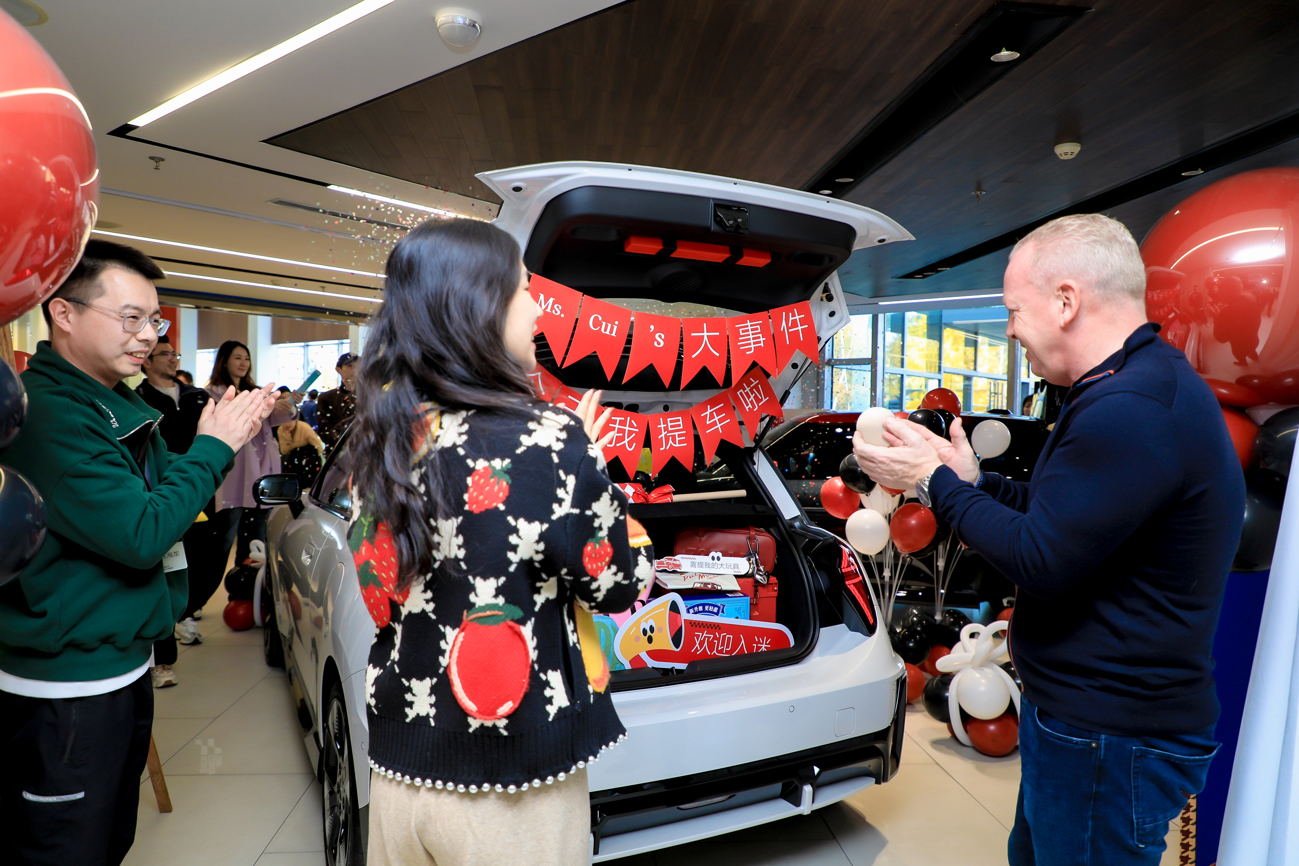 作为本次行程的重要环节,一场专为JCW车型打造的主题交车仪式在现场隆重举行。MINI全球高级副总裁Jean-Philippe Parain先生与百得利集团董事长周先生共同将车钥匙交付予车主,并送上专属鲜花与交车礼遇。这场充满仪式感的交付,不仅传递了MINI品牌对用户的诚挚祝福,也体现了经销商伙伴对客户体验的极致追求。